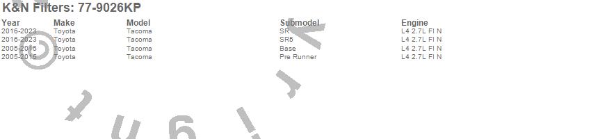 Below is an abbreviated list of applications for the Performance Induction Kit.Tacoma, Toyota, 2019, 2018, 2017, 2016, 2015, 2014, 2013, 2012, 2011, 2010, 2009, 2008, 2007, 2006, 2005