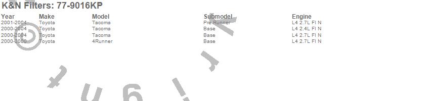 Below is an abbreviated list of applications for the Performance Induction Kit.4Runner, Tacoma, Toyota, 2004, 2003, 2002, 2001, 2000