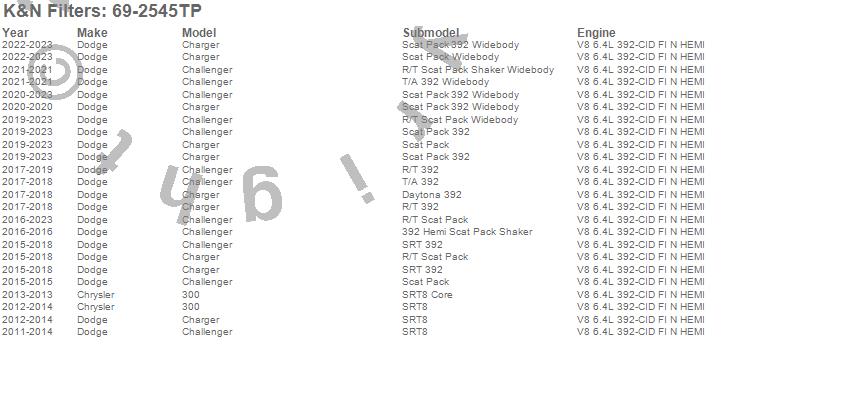 Below is an abbreviated list of applications for the Typhoon Cold Air Induction Kit.300, Challenger, Charger, Chrysler, Dodge, 2019, 2018, 2017, 2016, 2015, 2014, 2013, 2012, 2011
