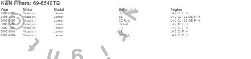 Below is an abbreviated list of applications for the Typhoon Short Ram Cold Air Induction Kit.Lancer, Mitsubishi, 2006, 2005, 2004, 2003, 2002