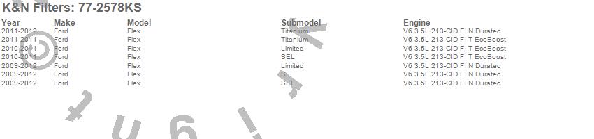 Below is an abbreviated list of applications for the Performance Induction Kit.Flex, Ford, 2012, 2011, 2010, 2009
