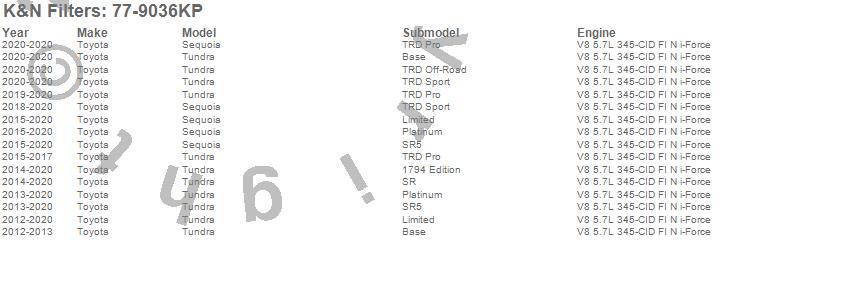 Below is an abbreviated list of applications for the Performance Induction Kit.Tundra, Toyota, 2019, 2018, 2017, 2016, 2015, 2014, 2013, 2012