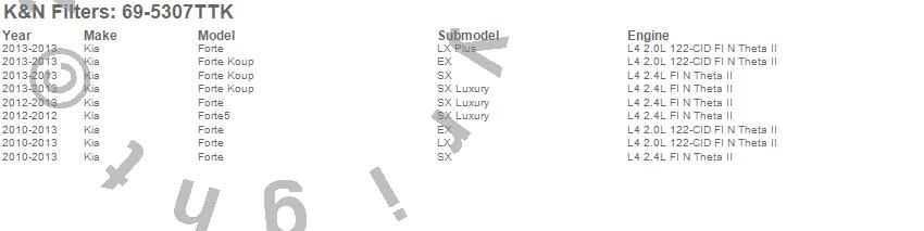 Below is an abbreviated list of applications for the Typhoon Cold Air Induction Kit.Forte, Forte Koup, Forte5, Kia, 2013, 2012, 2011, 2010