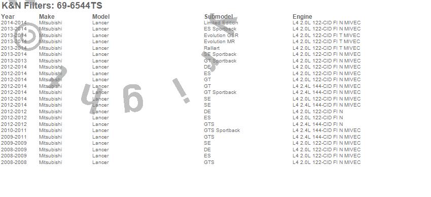 Below is an abbreviated list of applications for the Typhoon Cold Air Induction Kit.Lancer, Mitsubishi, 2014, 2013, 2012, 2011, 2010, 2009, 2008