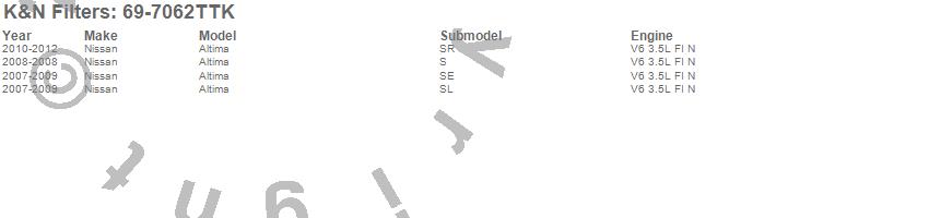 Below is an abbreviated list of applications for the Typhoon Cold Air Induction Kit.Altima, Nissan, 2012, 2011, 2010, 2009, 2008, 2007