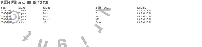 Below is an abbreviated list of applications for the Typhoon Cold Air Induction Kit.Matrix, xB, Scion, Toyota, 2015, 2014, 2013, 2012, 2011, 2010, 2009, 2008