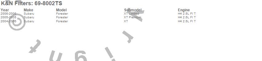 Below is an abbreviated list of applications for the Typhoon Short Ram Cold Air Induction Kit.Forester, Subaru, 2006, 2005, 2004