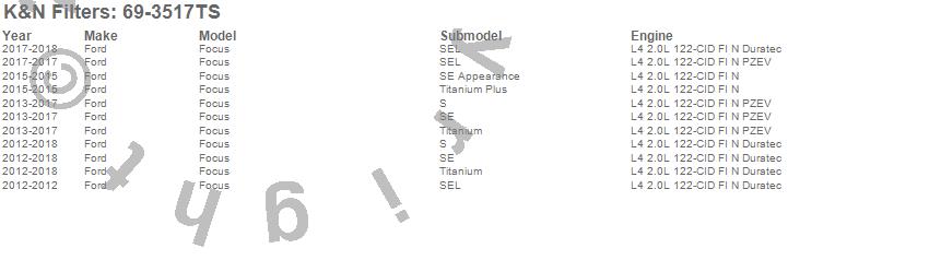 Below is an abbreviated list of applications for the Typhoon Cold Air Induction Kit.Focus, Ford, 2018, 2017, 2016, 2015, 2014, 2013, 2012