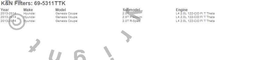 Below is an abbreviated list of applications for the Typhoon Cold Air Induction Kit.Genesis Coupe, Hyundai, 2014, 2013