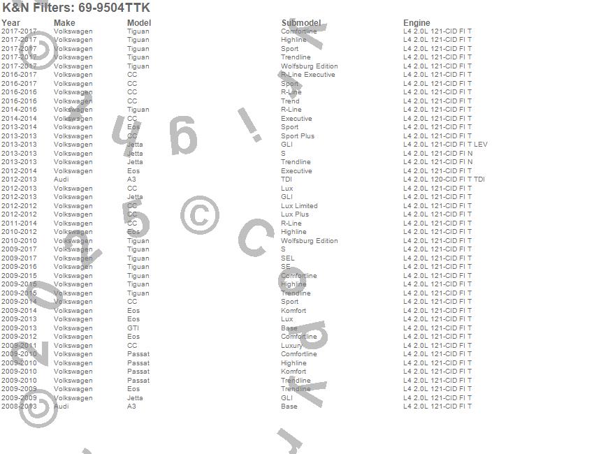 Below is an abbreviated list of applications for the Typhoon Cold Air Induction Kit.A3, CC, Eos, GTI, Jetta, Passat, Tiguan, Audi, Volkswagen, 2017, 2016, 2015, 2014, 2013, 2012, 2011, 2010, 2009, 2008