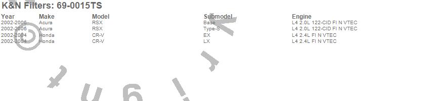 Below is an abbreviated list of applications for the Typhoon Short Ram Cold Air Induction Kit.CR-V, RSX, Acura, Honda, 2006, 2005, 2004, 2003, 2002
