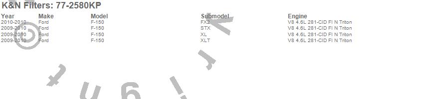 Below is an abbreviated list of applications for the Performance Induction Kit.F-150, Ford, 2010, 2009