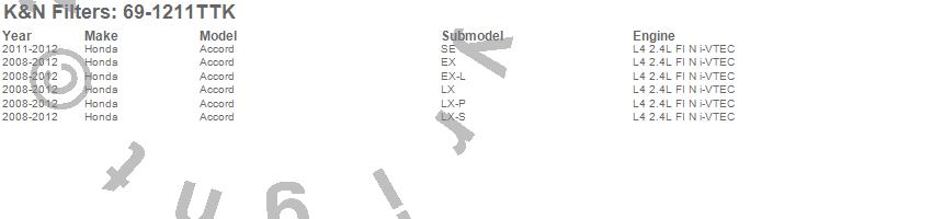 Below is an abbreviated list of applications for the Typhoon Cold Air Induction Kit.Accord, Honda, 2012, 2011, 2010, 2009, 2008