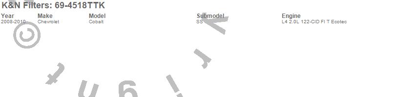 Brand: K&N FiltersPart Number: 69-4518TTKAir Intake Kit Type: Textured Black - Incl. Air Filter/Heat Shield/Tubing - Estimated Horsepower Gain 12.22 HP At 4600 RPMUPC: 024844266972