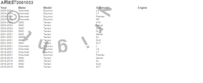 Below is an abbreviated list of applications for the AeroTread Running Boards w/Mounting Brackets.Equinox, Terrain, Chevrolet, GMC, 2024, 2021, 2020, 2019, 2018
