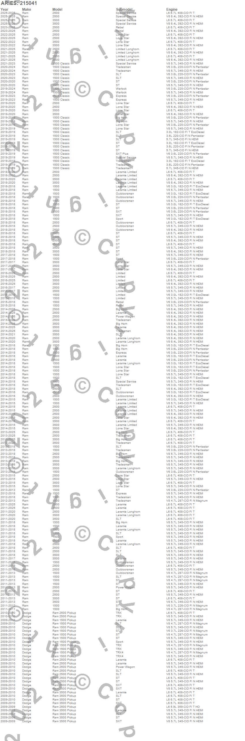 Below is an abbreviated list of applications for the 3 in. Round Side Bars.1500, 1500 Classic, 2500, 3500, Ram 1500, Ram 2500, Ram 3500, Dodge, Ram, 2026, 2025, 2024, 2023, 2022, 2021, 2020, 2019, 2018, 2017, 2016
