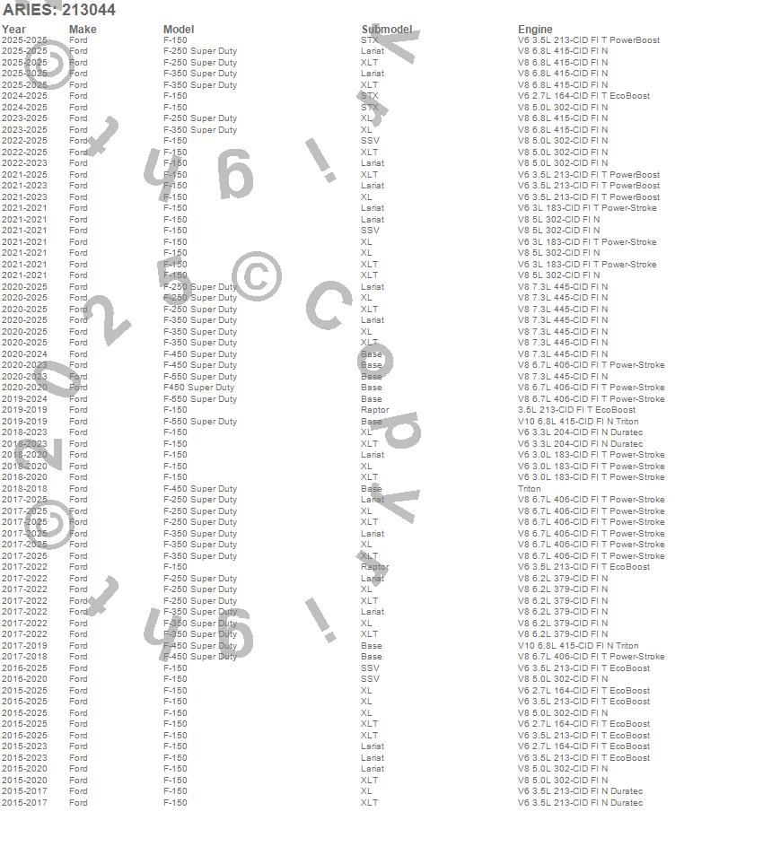 Brand: ARIESPart Number: 213044Nerf/Step Bar Type: Incl. Side Bars And Mounting Hardware - Stainless Steel - Semi-Gloss Black Powder CoatUPC: 849055014552