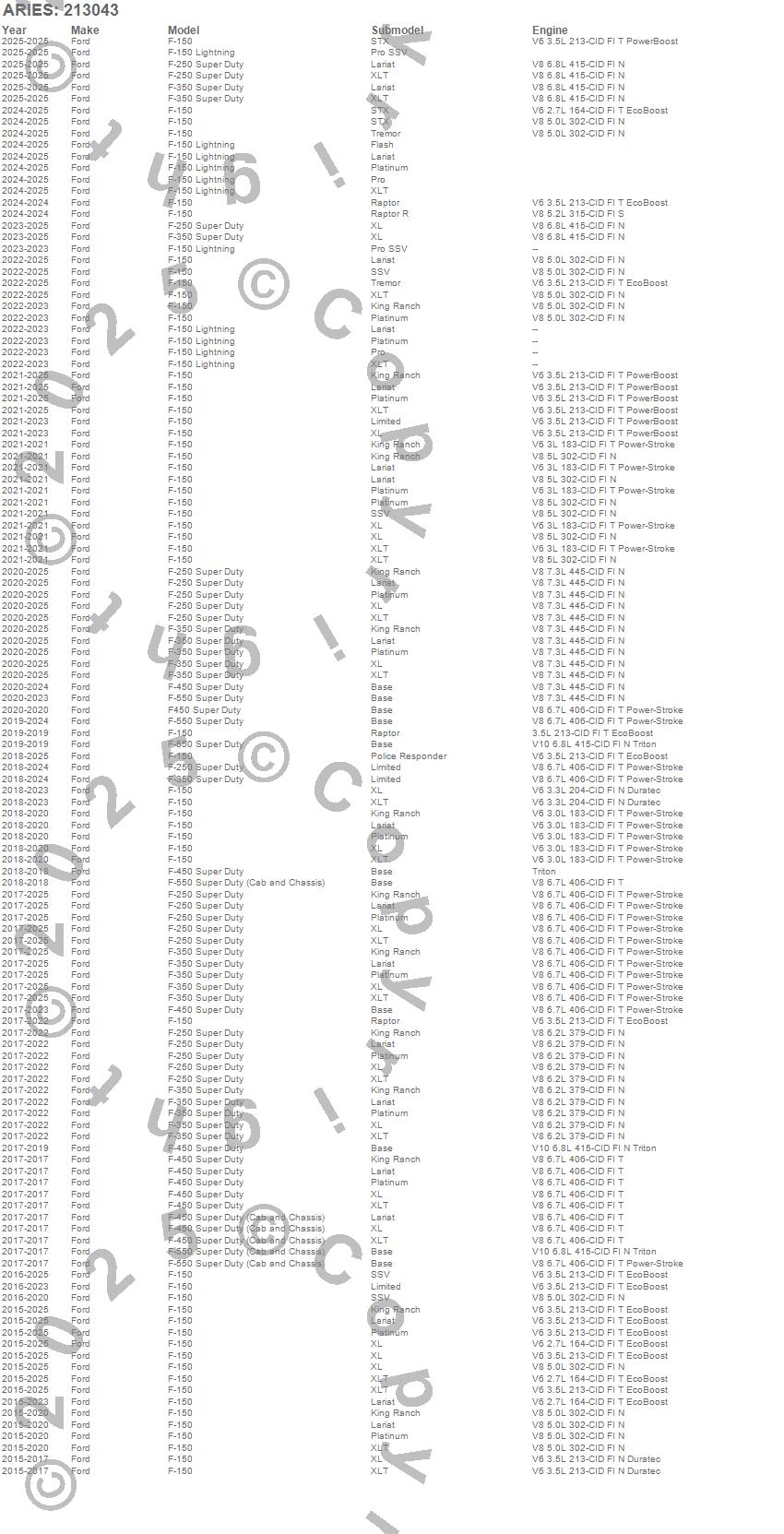 Brand: ARIESPart Number: 213043Nerf/Step Bar Type: Incl. Side Bars And Mounting Hardware - Stainless Steel - Semi-Gloss Black Powder CoatUPC: 849055014545