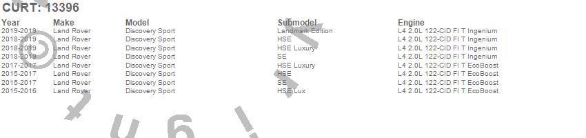 Below is an abbreviated list of applications for the Class III 2 in. Receiver Hitch.Discovery Sport, Land Rover, 2019, 2018, 2017, 2016, 2015
