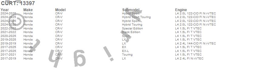 Below is an abbreviated list of applications for the Class III 2 in. Receiver Hitch.CR-V, Honda, 2026, 2025, 2024, 2023, 2022, 2021, 2020, 2019, 2018, 2017
