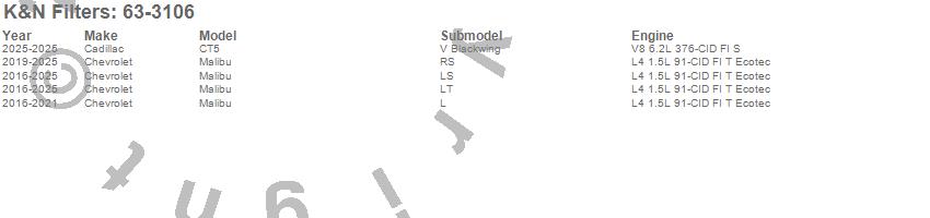 Below is an abbreviated list of applications for the 63 Series Aircharger Kit.Malibu, Chevrolet, 2018, 2017, 2016