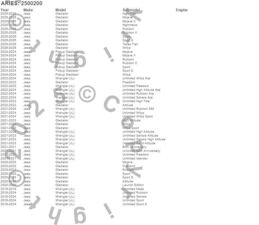 Below is an abbreviated list of applications for the Tubular Door.Gladiator, Pickup Gladiator, Wrangler (JL), Jeep, 2026, 2025, 2024, 2023, 2022, 2021, 2020, 2019, 2018