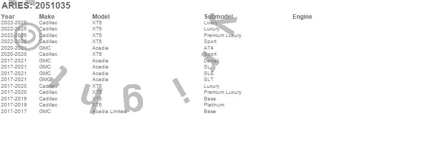 Below is an abbreviated list of applications for the AeroTread Running Boards w/Mounting Brackets.Acadia, Acadia Limited, XT5, Cadillac, GMC, 2025, 2024, 2023, 2022, 2021, 2020, 2019, 2018, 2017