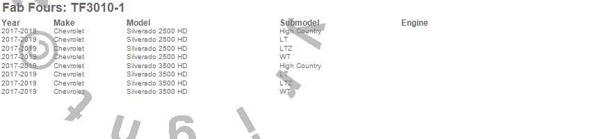 Brand: Fab FoursPart Number: TF3010-1Fender Flare Type: Open 2 Stage Black Powder CoatedUPC: 005810115852