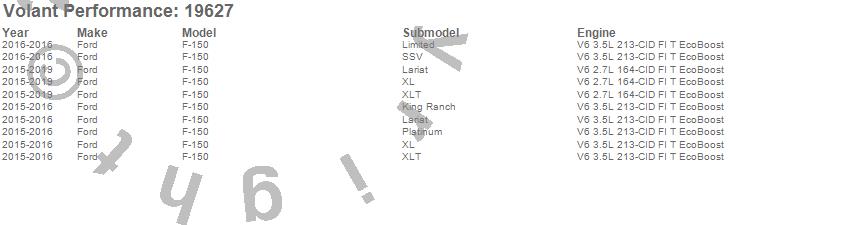 Below is an abbreviated list of applications for the Cold Air Intake Kit.F-150, Ford, 2019, 2018, 2017, 2016, 2015