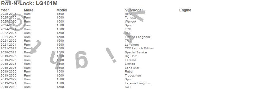 Below is an abbreviated list of applications for the Roll-N-Lock M-Series Truck Bed Cover.1500, Ram, 2025, 2024, 2023, 2022, 2021, 2020, 2019