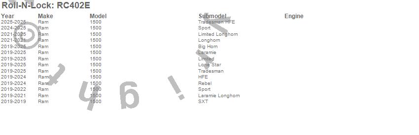 Below is an abbreviated list of applications for the Roll-N-Lock E-Series Tonneau Cover.1500, Ram, 2025, 2024, 2023, 2022, 2021, 2020, 2019