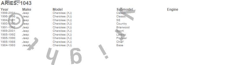 Below is an abbreviated list of applications for the Grille Guard.Cherokee (XJ), Jeep, 2001, 2000, 1999, 1998, 1997, 1996, 1995, 1994, 1993, 1992, 1991, 1990, 1989, 1988, 1987, 1986, 1985, 1984