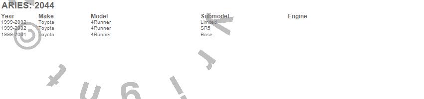 Below is an abbreviated list of applications for the Grille Guard.4Runner, Toyota, 2002, 2001, 2000, 1999