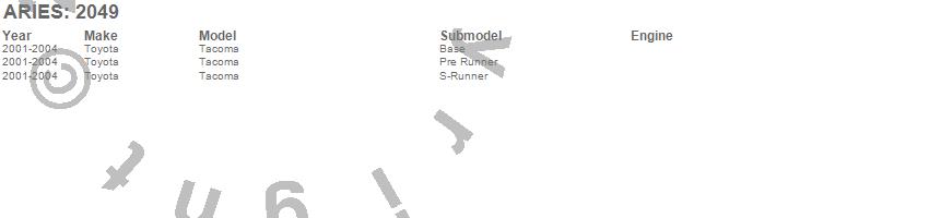 Below is an abbreviated list of applications for the Grille Guard.Tacoma, Toyota, 2004, 2003, 2002, 2001