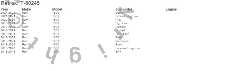 Brand: RetraxPart Number: T-60245Tonneau Cover Type: Textured Matte BlackUPC: 840563126720