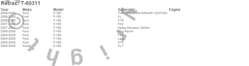 Below is an abbreviated list of applications for the RetraxONE XR Retractable Tonneau Cover.F-150, Ford, 2008, 2007, 2006, 2005, 2004