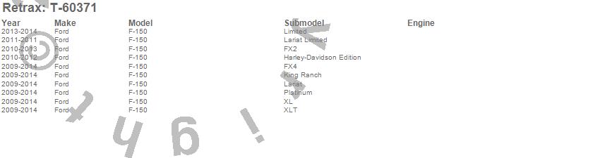 Below is an abbreviated list of applications for the RetraxONE XR Retractable Tonneau Cover.F-150, Ford, 2014, 2013, 2012, 2011, 2010, 2009