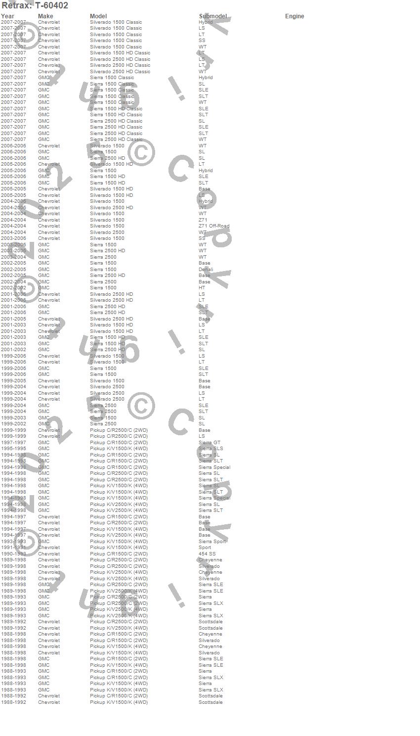 Below is an abbreviated list of applications for the RetraxONE XR Retractable Tonneau Cover.C1500 Pickup, C2500 Pickup, K1500, K1500 Pickup, K2500 Pickup, Sierra 1500, Sierra 1500 Classic, Sierra 1500 HD, Sierra 1500 HD Classic, Sierra 2500, Sierra 2500 HD, Sierra 2500 HD Classic, Silverado 1500, Silverado 1500 Classic, Silverado 1500 HD, Silverado 1500 HD Classic, Silverado 2500, Silverado 2500 HD, Silverado 2500 HD Classic, Chevrolet