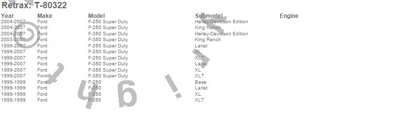 Below is an abbreviated list of applications for the RetraxPRO XR Retractable Tonneau Cover.F-250, F-250 Super Duty, F-350 Super Duty, Ford, 2007, 2006, 2005, 2004, 2003, 2002, 2001, 2000, 1999