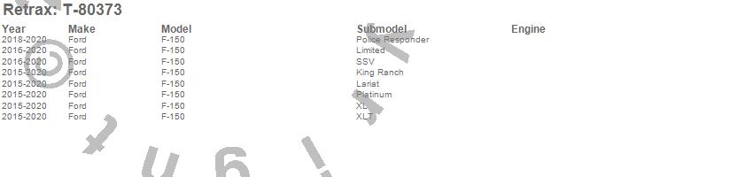 Below is an abbreviated list of applications for the RetraxPRO XR Retractable Tonneau Cover.F-150, Ford, 2020, 2019, 2018, 2017, 2016, 2015