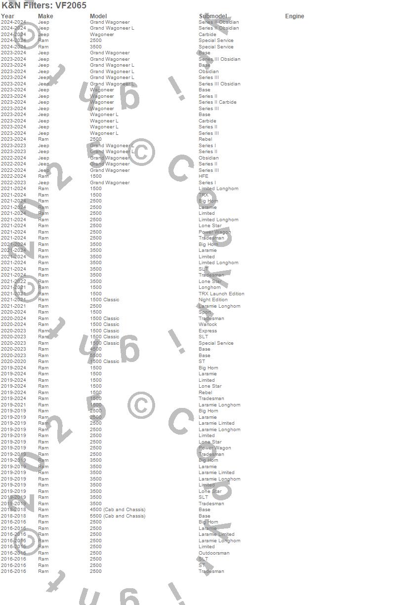 Below is an abbreviated list of applications for the Cabin Air Filter.1500, 2500, 3500, Ram, 2019