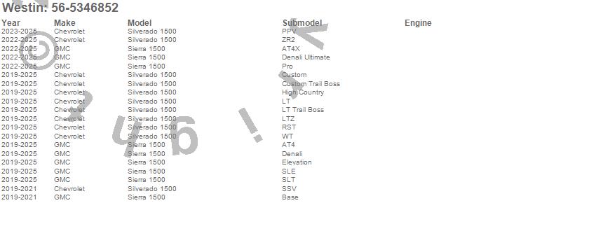 Brand: WestinPart Number: 56-5346852Nerf/Step Bar (Wheel to Wheel) Type: Textured BlackUPC: 707742092187