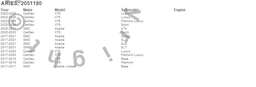 Below is an abbreviated list of applications for the AeroTread Mounting Brackets.Acadia, Acadia Limited, XT5, Cadillac, GMC, 2025, 2024, 2023, 2022, 2021, 2020, 2019, 2018, 2017