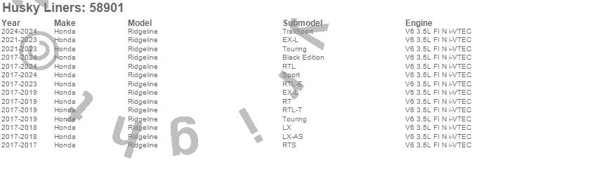 Below is an abbreviated list of applications for the Custom Molded Mud Guards.Ridgeline, Honda, 2024, 2023, 2022, 2021, 2020, 2019, 2018, 2017