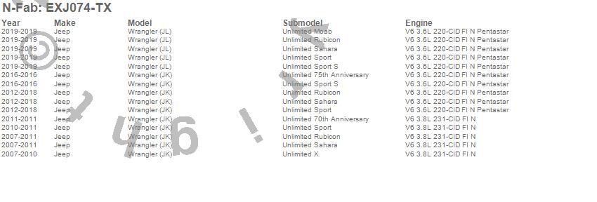 Below is an abbreviated list of applications for the Cab Length EPYX Step System.Wrangler (JK), Wrangler (JL), Jeep, 2019, 2018, 2017, 2016, 2015, 2014, 2013, 2012, 2011, 2010, 2009, 2008, 2007