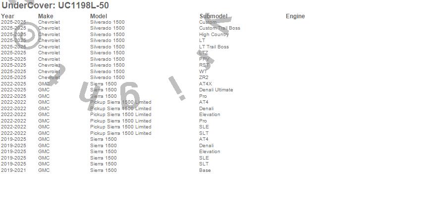 Below is an abbreviated list of applications for the Elite LX Tonneau Cover.Pickup Sierra 1500 Limited, Sierra 1500, Silverado 1500, Chevrolet, GMC, 2026, 2025, 2024, 2023, 2022, 2021, 2020, 2019