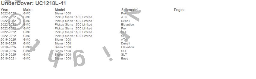 Brand: UnderCoverPart Number: UC1218L-41Tonneau Cover Type: Black - Paint Code GBA/WA8555UPC: 192631020905