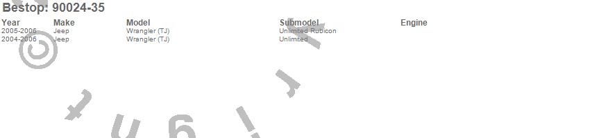 Below is an abbreviated list of applications for the Duster Deck Cover.Wrangler (TJ), Jeep, 2006, 2005, 2004