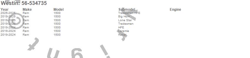 Brand: WestinPart Number: 56-534735Nerf/Step Bar (Wheel to Wheel) Type: Textured Black Steel - Incl. Mounting Bracket - Hardware/Install SheetUPC: 707742093085