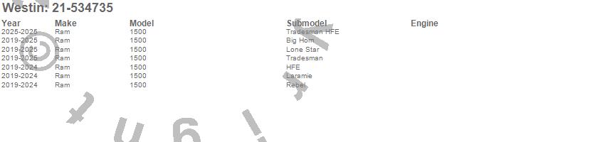 Brand: WestinPart Number: 21-534735Nerf/Step Bar (Wheel to Wheel) Type: Black - w/Mount Kit - For Quad CabUPC: 707742093122